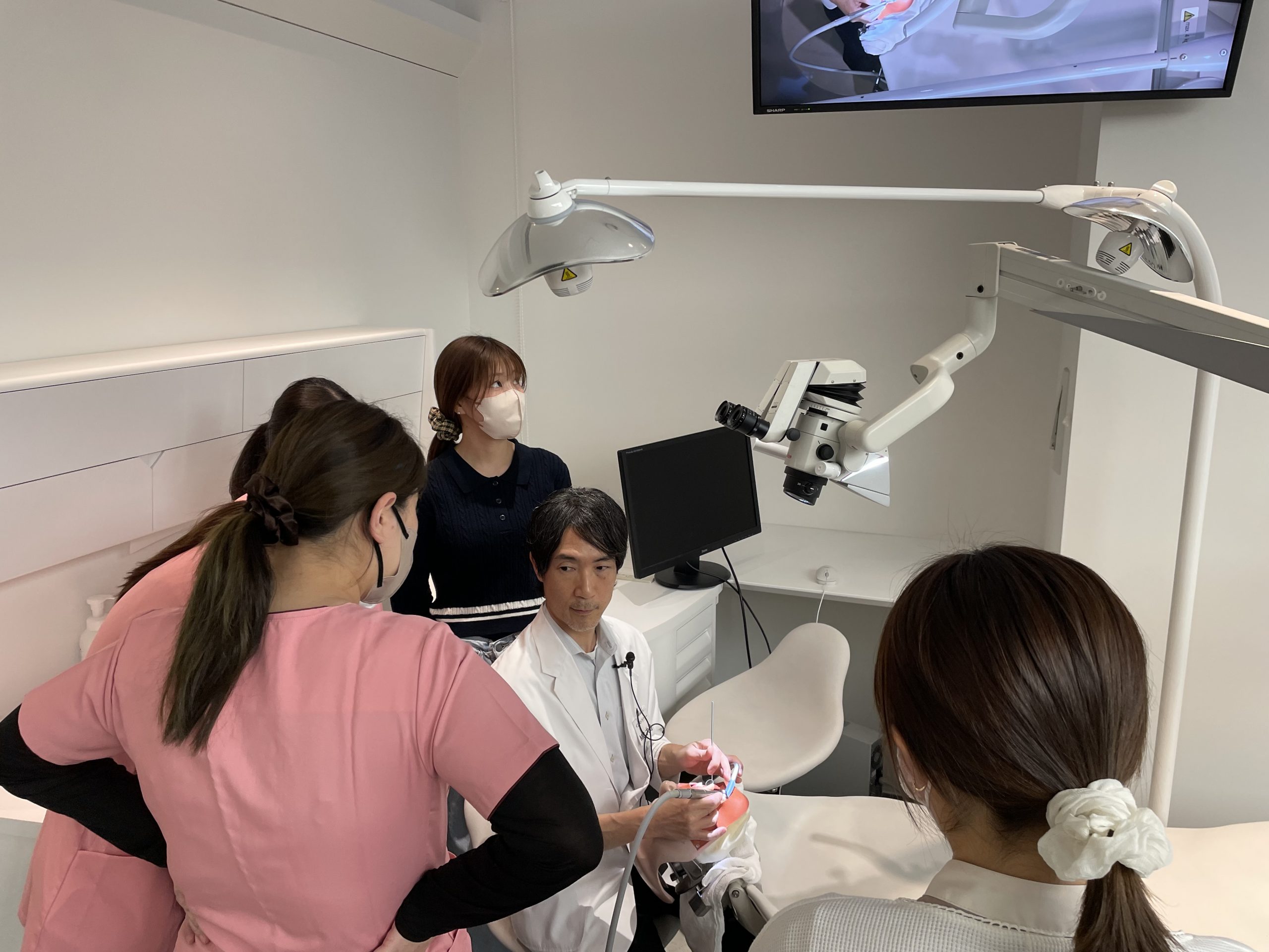 受講生は6名で、東京から山口まで各地よりご参加いただきました。歯科衛生士向けのコースですが、今回は歯科医師の先生も受講生として参加されました。講義では側方圧パターンやポジショニングのチューニングなどを学び、実習後には大島先生によるフィール21を用いた「ひとりバキューム」のデモも行われました。内容は盛りだくさんでしたが、受講生の皆さんは最後まで熱心に取り組んでくださいました。今後も練習を重ね、pd診療の理解と技術の向上につながることを期待しています。
